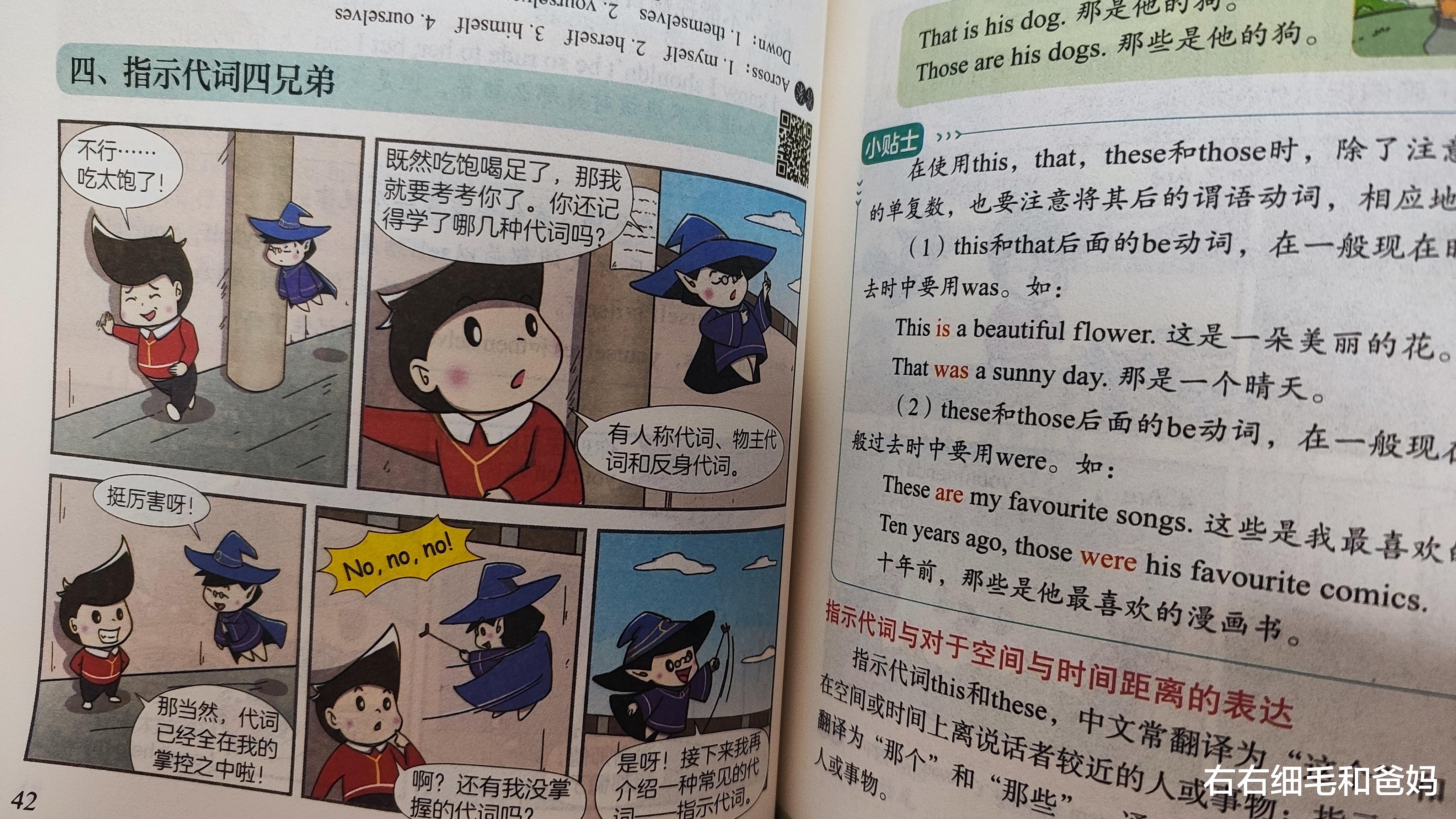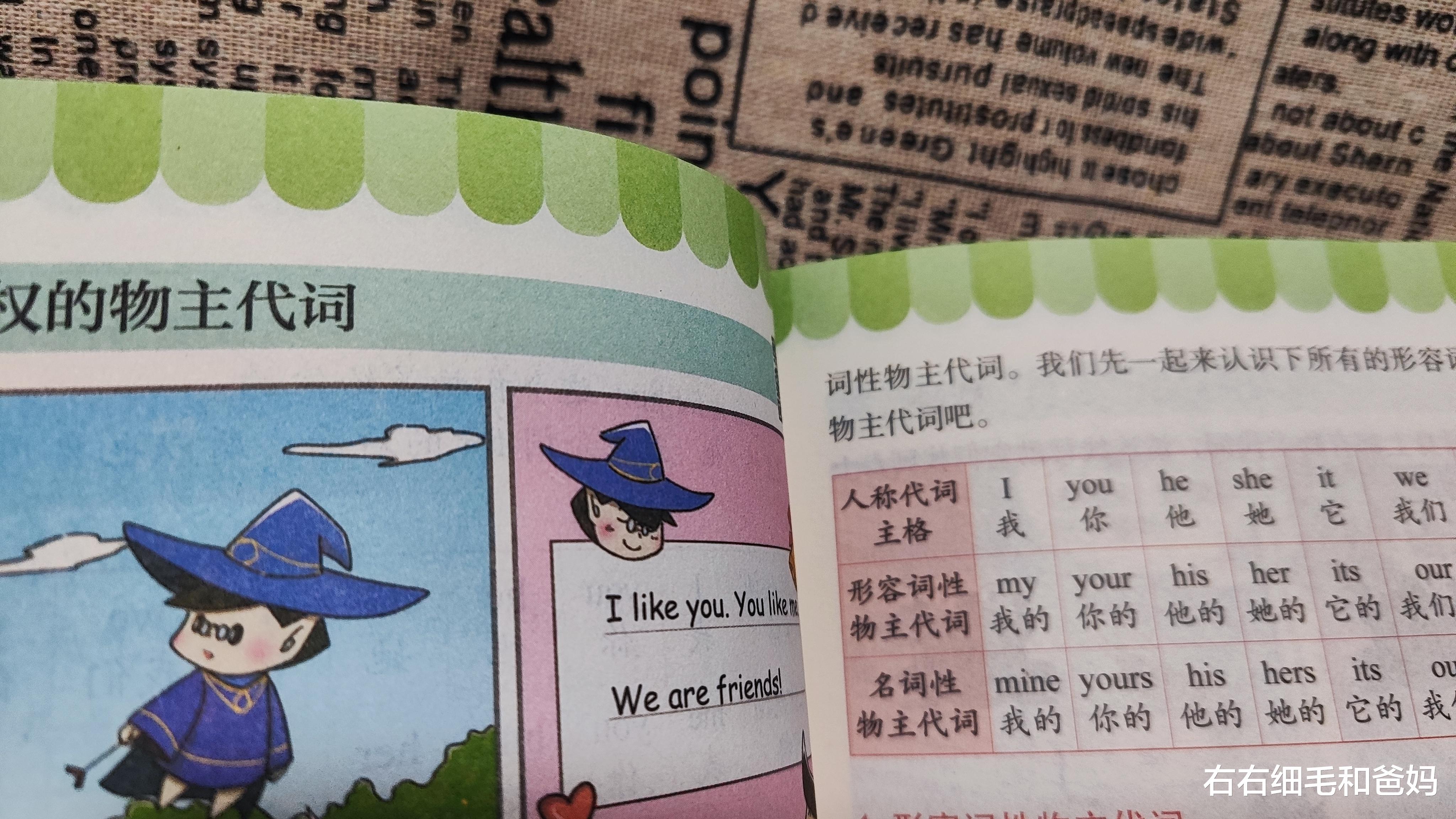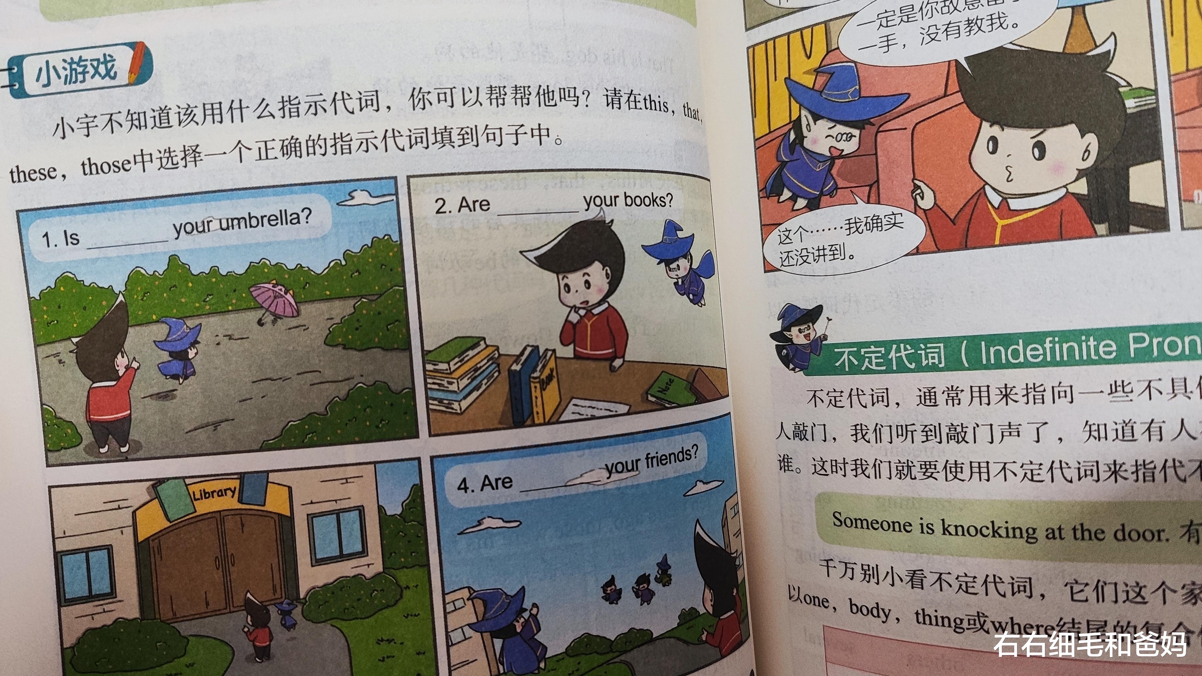 我也给双胞胎购入了一本,毕竟暑假作业预习三年级教材,那些我整理不好的语法,我讲不好的例句,我说不清为啥bread(面包)属于不可数名词的冷知识,《用漫画轻松学好小学英语语法、词法》里都可以找到,孩子们也可以主动学起来!