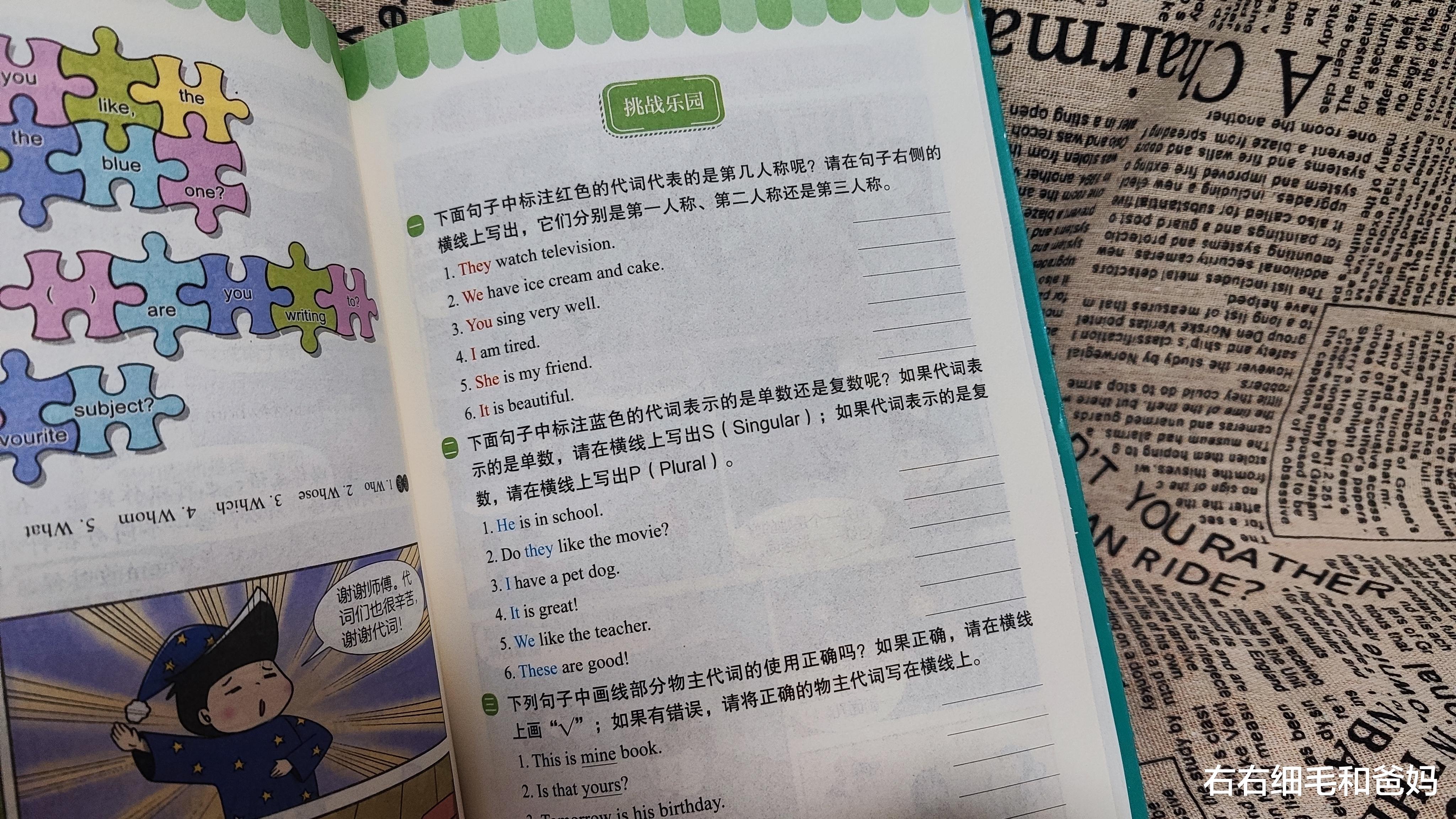 那些让我傻傻写不全的人称代词的主格、宾格等等,跟老师写的一样全,还不用去回忆曾经写在哪一册《英语》教材书上了,直接看《用漫画轻松学好小学英语语法、词法》,知识点都整理好了,例句配好了,习题也配好了!