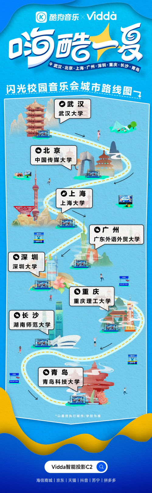 6月恰逢毕业季,以歌代酒唱响青春,是许多高校的“传统节目”。6月13日,海信旗下科技潮牌Vidda与酷狗音乐联合官宣,将在武汉大学、中国传媒大学等8所高校开展“闪光校园”系列校园音乐会,用不同的内容与主题展示“00后”高校大学生的风采。