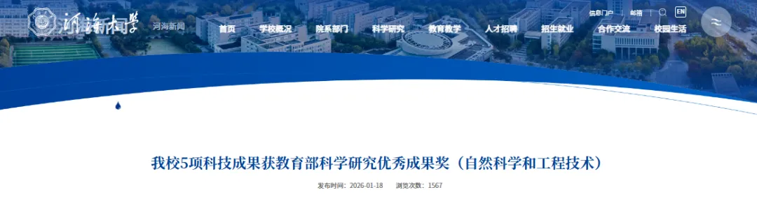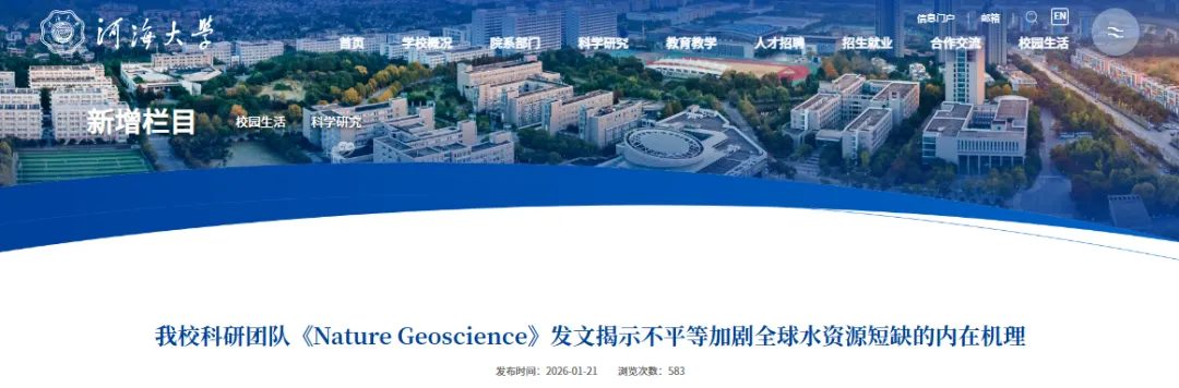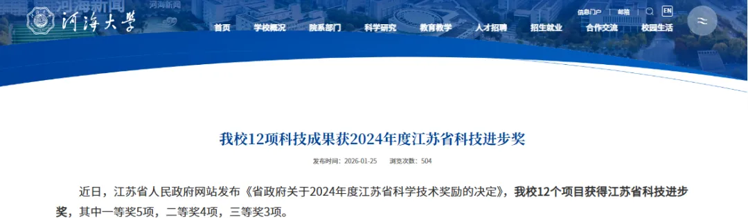 短短一周内, 三项重量级的科研成果相继发布,文科学院首次在《Nature Geoscience》上亮相, 同时有12个项目获得了省级科技进步奖项, 就在2026年新年伊始, 河海大学的科研力量显得尤为突出,