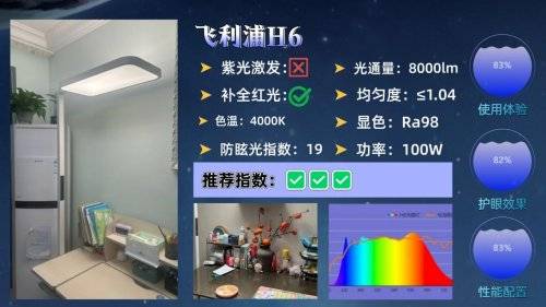 护眼大路灯第八名:飞利浦H6;Ra98.2高显色指数,适合读写画画场景。