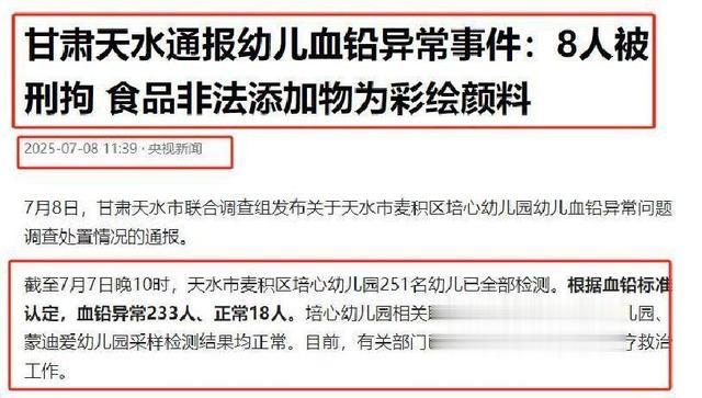 毒,从来只是一场看不见的战役。可谁又能想到,现在的孩子们吃上了一口“毒甜点”,背后竟是让人胆寒的恶意!就在甘肃天水市麦积区,一个幼儿园让几十个孩子陷入了铅中毒的阴影,这到底是巧合还是人为?背后真相究竟有多惊悚呢?