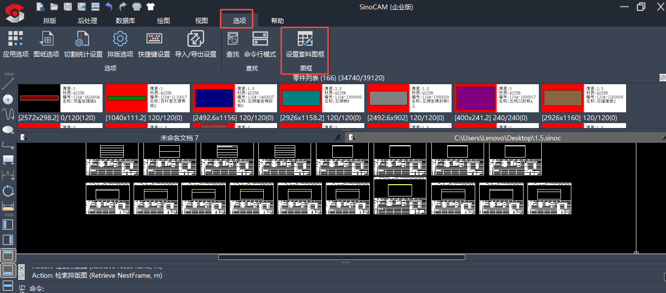 原本在SinoCAM智能套料软件中,如果我们要修改排版框的模板,需要找到电脑中存放的panel_zh_cn.sinoc模板,再打开该文件修改设置。一些用户反馈该步骤较为繁琐,我们新增了一个功能按键,用户可点击“设置套料图框”功能,一键打开套料图模板进行修改。