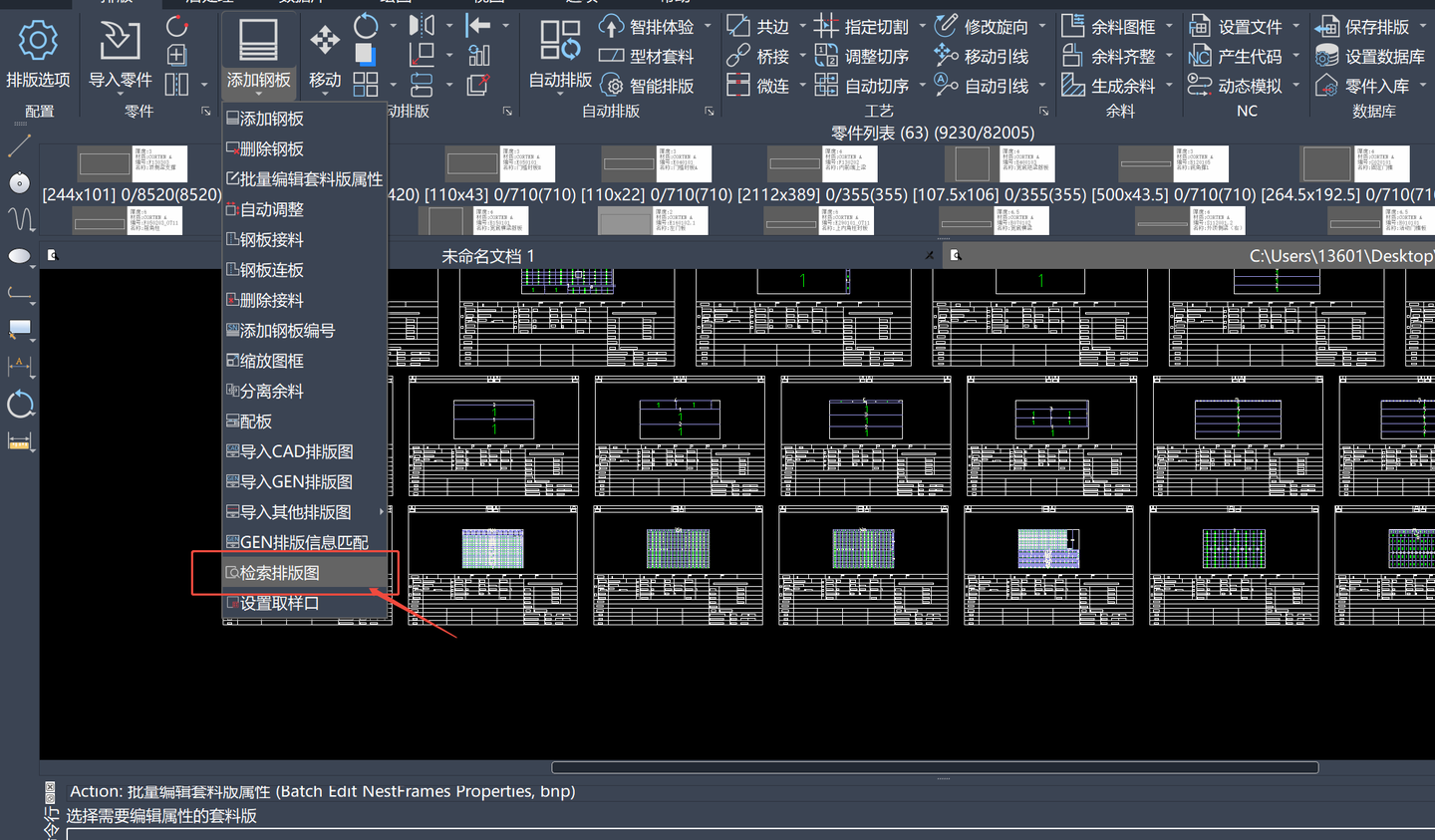 3、选中需要调整的排版图后,软件界面会自动跳转到选中的这张钢板;
