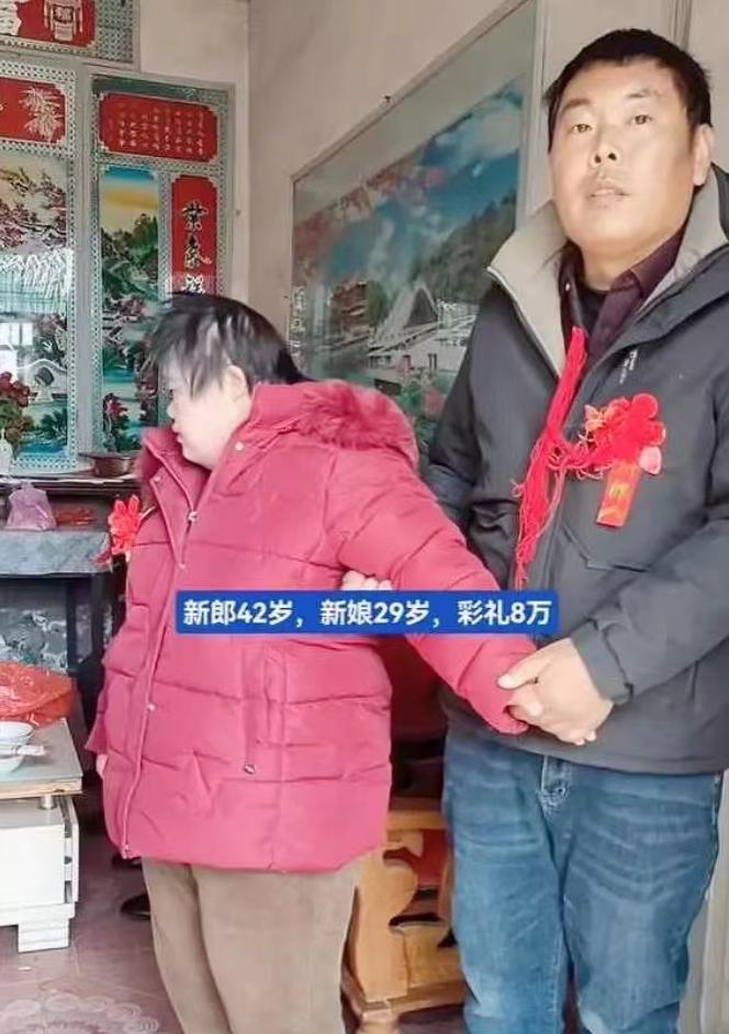 想想看,一个42岁的大龄单身汉,非但不嫌弃一个29岁、身体有残疾的女人,还乐于砸出8万块彩礼。