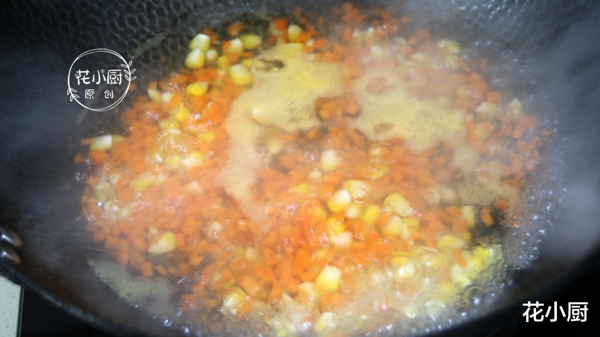 4、煮藜麦的时间我们用另外的锅具来煮玉米粒,水开之后加一小勺盐,先下入玉米粒煮10分钟,接着下入胡萝卜丁继续煮2-3分钟,然后捞出沥水;