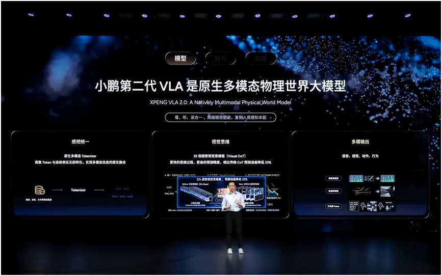 在模型层面,小鹏第二代VLA是原生多模态物理世界大模型,集“看、听、读”为一体。不仅是自动驾驶模型,还可以应用在Robotaxi、飞行汽车和人形机器人上。