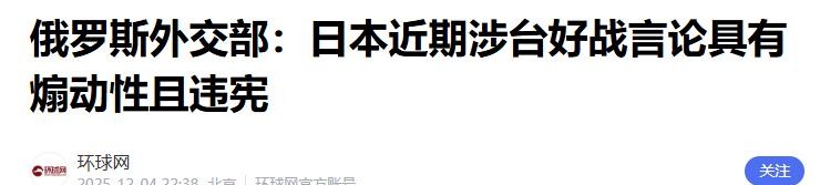 台湾问题,一开始只是中国日本的矛盾,现在变成大国博弈了,高市早苗想把日本变成地区安全的关键,想用台湾问题,同时牵制中国,美国,俄罗斯,11月7日,高市早苗在国会答辩中提及中国攻打台湾日本可能行使集体自卫权,11月19-21日,俄罗斯外交部连续发表声明,措辞严厉,批评高市早苗,11月25日,俄太平洋舰队在印度洋海域进行实弹演习,11月下旬,美国B-52战略轰炸机和日本航空自卫队战机在日海空域联合行动,12月2日,中国外长王毅在莫斯科会见俄罗斯外长拉夫罗夫,12月3日,高市在国会提到日本政策以1972年中日联合公报为依据。