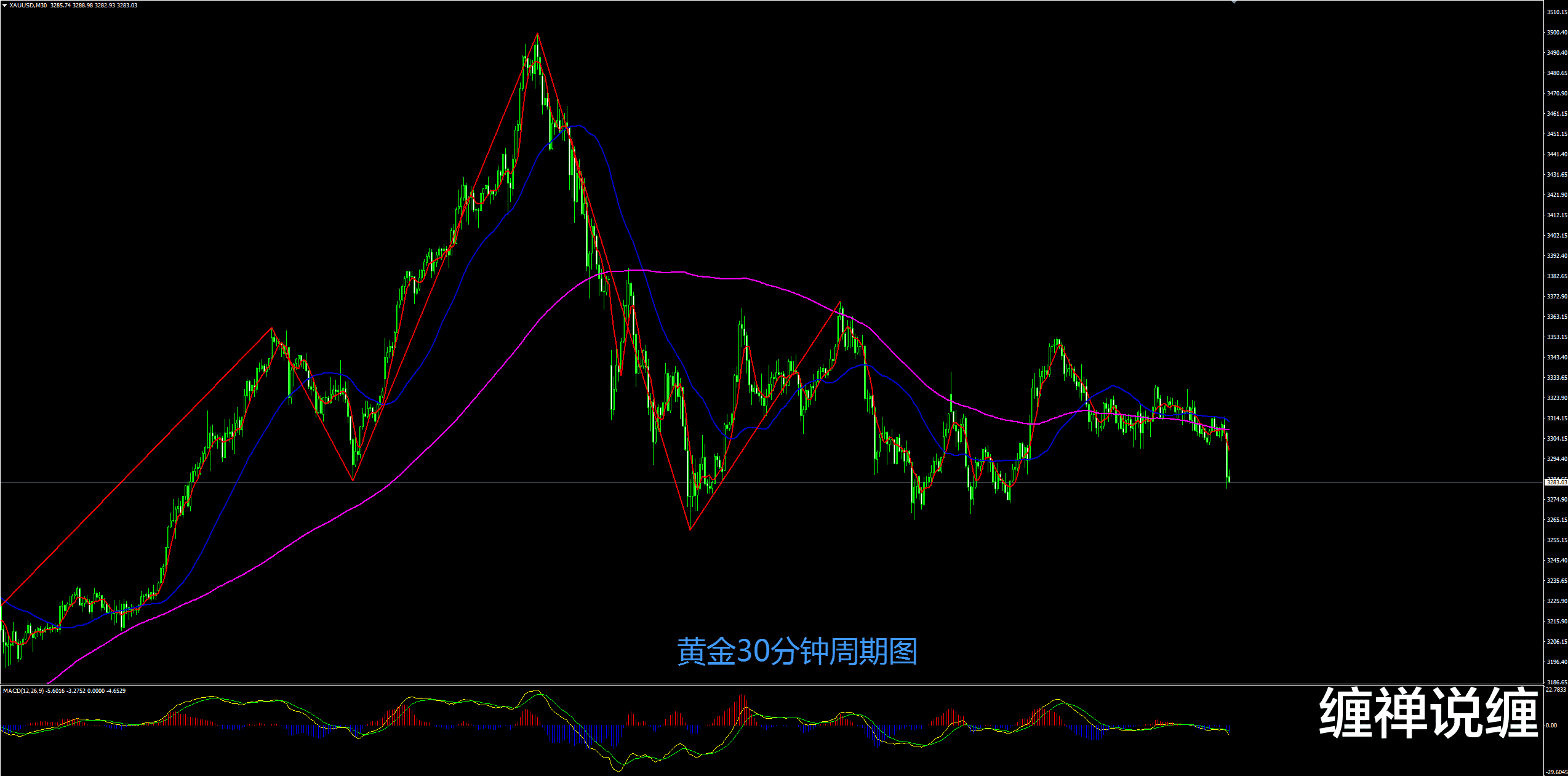 黄金30分钟还是继续大震荡,黄金如果突破3353,那么黄金30分钟才会有上涨延续,如果黄金跌破3264,那么黄金30分钟下跌延续,黄金现在还是震荡,晚间小非农,黄金看是否能走出震荡,黄金短线如果反弹遇阻3330,那么还是可以继续空。如果黄金小非农之后强势上涨,美盘后持续走稳,那么黄金才会有多头的机会。黄金反弹弱势继续下跌,小非农反弹遇阻继续空!
