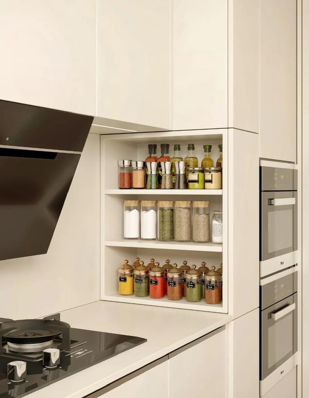 把调料放调料柜里,还能腾出更多台面空间,做饭的时候操作空间就更大了。