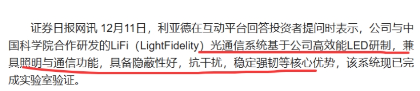 Micro LED光互联:公司与中科院合作研发的LiFi(Ligdelity)光通信系统基于我司高效能LED研制;公司持续推进透明玻璃基MicrOLED产品良率提升及成本下降。