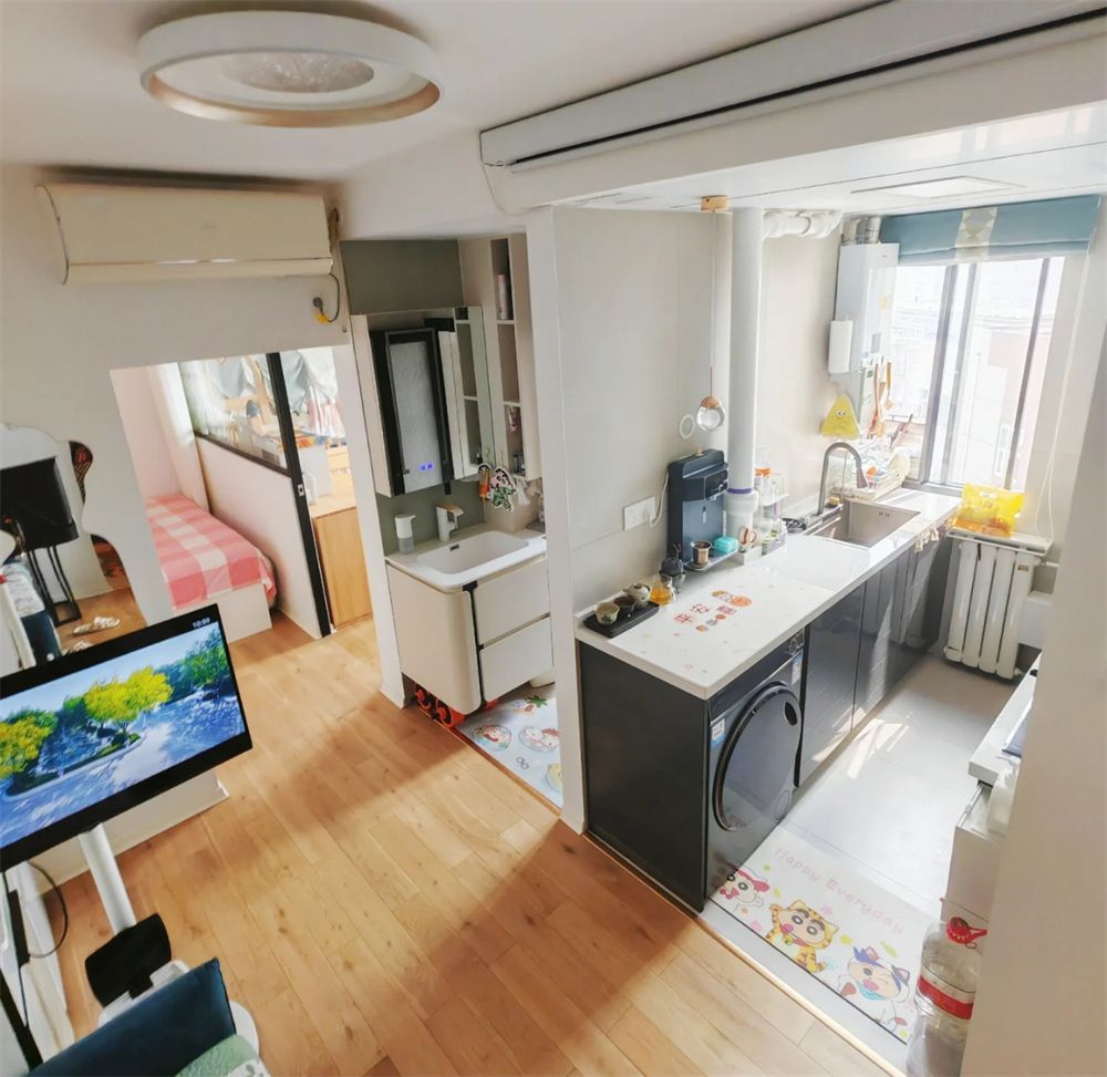这家人的小房子面积只有26㎡,原本是个一居室的小房子,但重新装修改造过后,却切分出了两室,还有半开放式的厨房和卫生间,住下一家三口毫无问题。