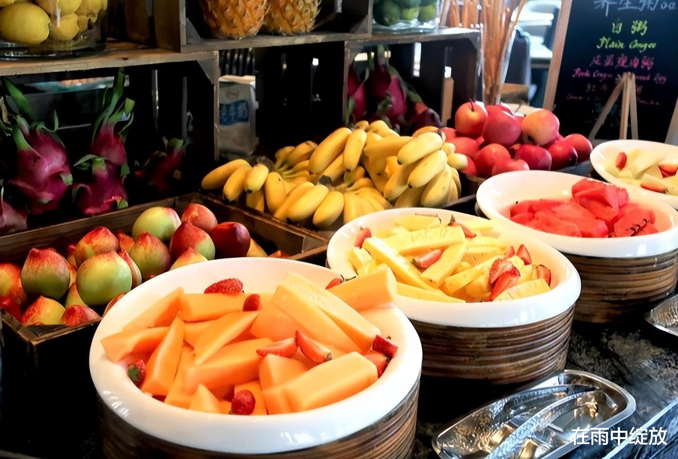 自助餐厅的水果区承载着餐前开胃和餐后解腻的双重功能。餐厅每天清晨采购新鲜水果,确保品质和新鲜度。