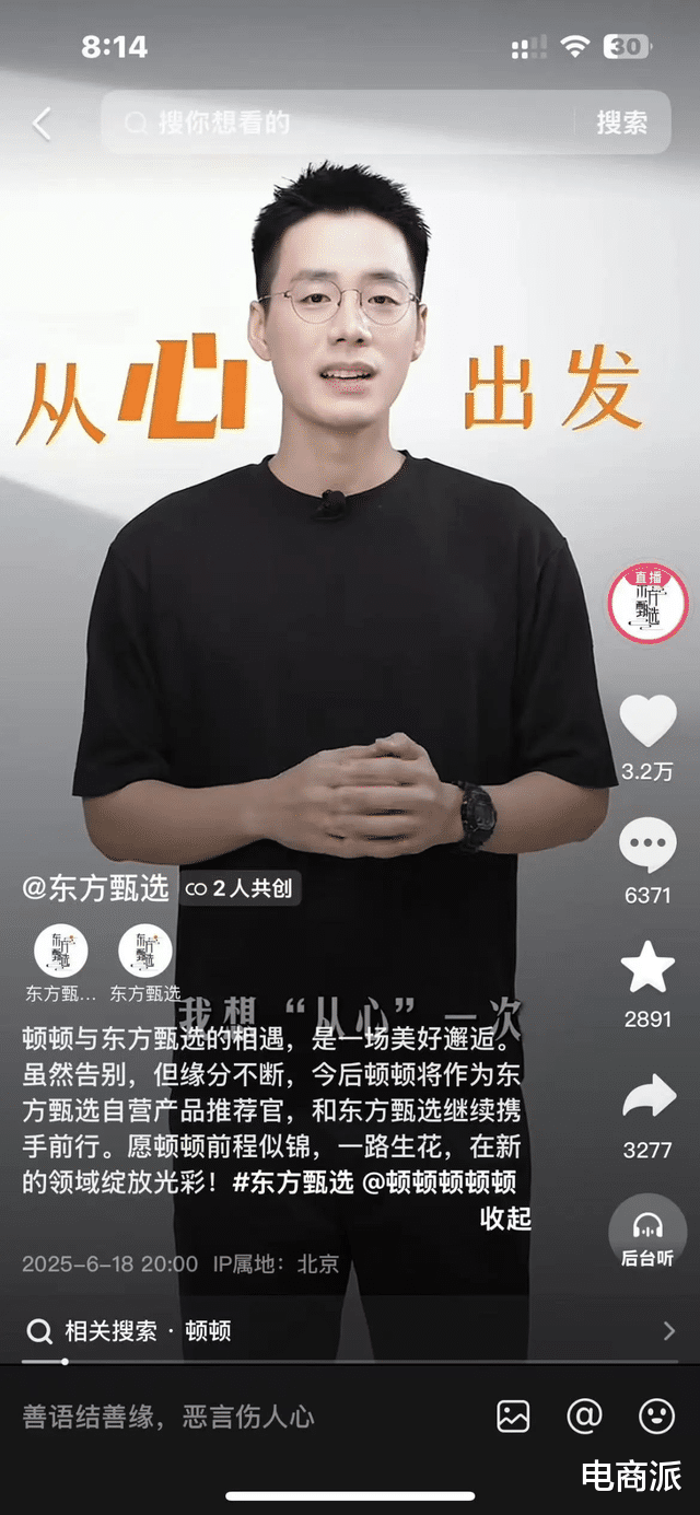 这也是继董宇辉、顿顿后,东方甄选的又一大将离开。
