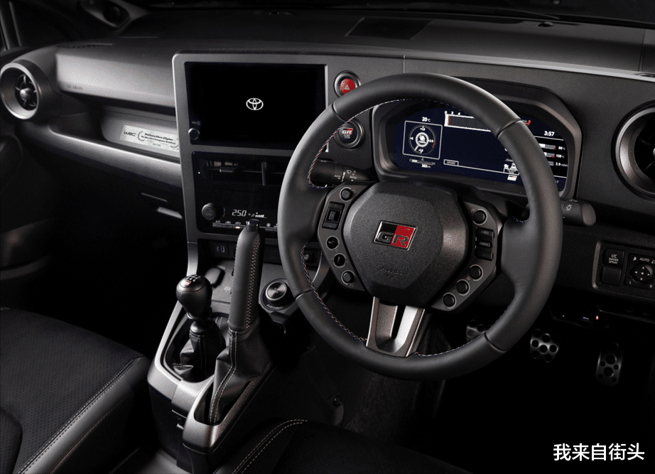 外观套件上,该GR Yaris也获得专属的引擎盖开口,前后蓝色的刹车卡钳和大尾翼加持,前格栅上也镶嵌上代表车手国际(法国)的三原色点缀,整车颜色也是丰田在2025年的运动色Black Gravite,一眼这能看出这辆特别版GR Yaris特别的身份。