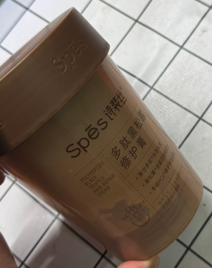 Spes这个牌子在护发圈不算太大众,包装是那种简约的性冷淡风,棕色系摆在洗漱台上还挺有质感的。品牌主打"科技融合自然"的概念,喜欢用一些听起来很高端的成分,比如黑松露、鱼子酱这些。不过懂成分的一看就知道,这些贵妇成分在配方表里排得比较靠后。