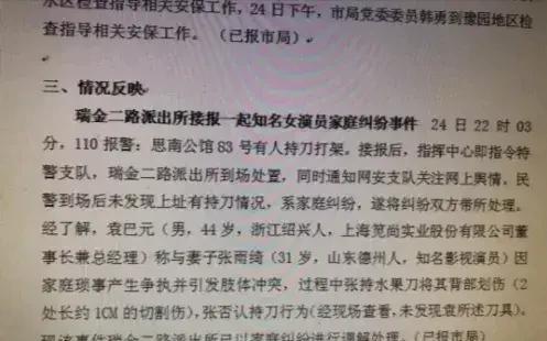 还有当时张雨绮和袁巴元在家里打架,帽子叔叔到现场后发现并没有所说的持刀打架。