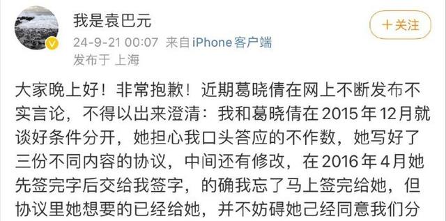 袁巴元不是说两个人2015年底就说好了要分手么?