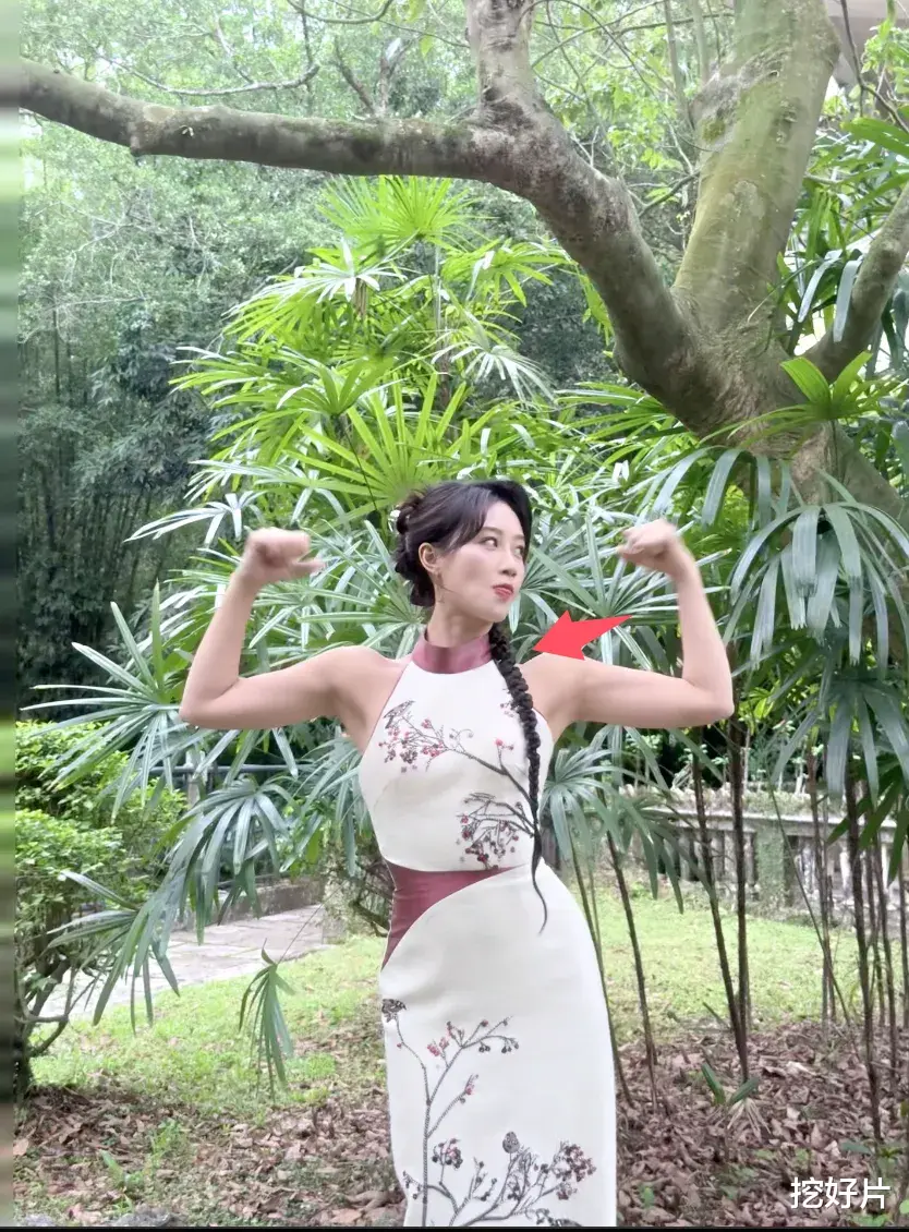 有一幅图,蓝盈莹还做出了伸展运动的样子,她大膀子处的肌肉清晰可见,相当醒目,很坚实有力,有一种很健康很阳光的美感。