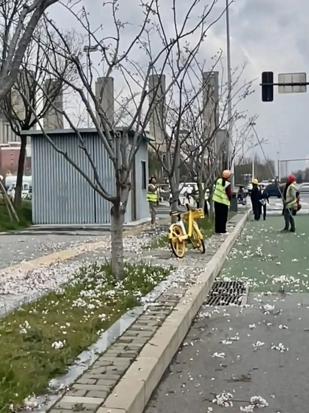 通报指出,工作人员在元朔大道绿化带内作业,本意是“通过人工干预来调控花芽数量”,以养护长势较弱的个别苗木。养护本应采取修剪等方式,但工作人员为图省事,直接使用长杆敲打树枝,导致盛开的行道树花朵被打落,花瓣散落一地,造成了“人为打花”的观感和负面影响。