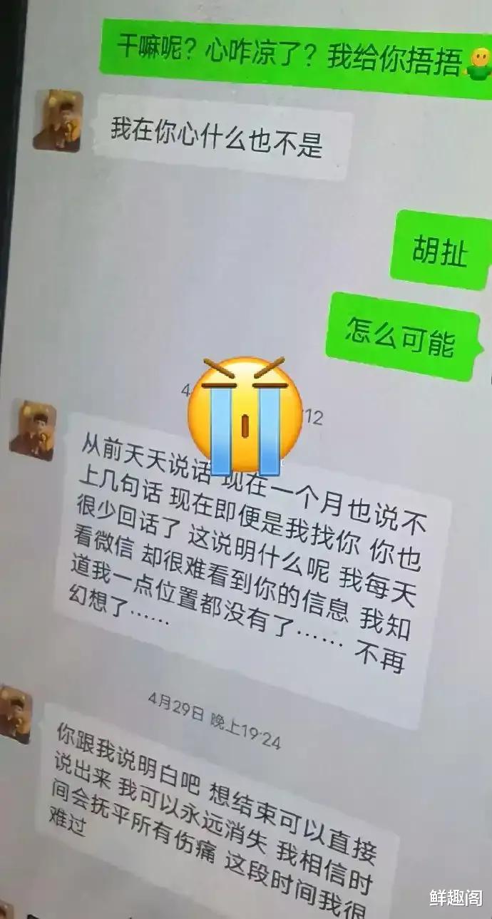 她随后展开“逼宫”,委屈地追问对方:“我现在和你的感情算是什么?你一直没有和妻子离婚,是希望我主动离开吗?”然而,男方的回应逐渐减少,从曾经的天天联系,到后来一个月也回复不了几条信息。