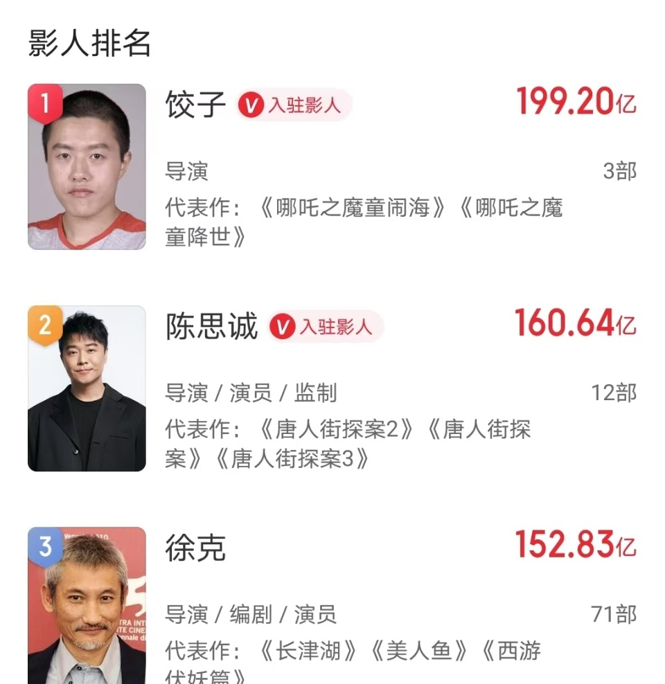 然而,饺子的票房奇迹并不仅限于中国内地市场。如果将海外票房纳入计算,《哪吒》系列的影响力将进一步扩大。第一部《哪吒》的海外票房为1000万美元,约合人民币7000万;而《哪吒2》的海外票房更是突破了4000万美元,接近3亿人民币。两者相加,《哪吒》系列的海外总票房已接近4亿人民币。因此,该系列的全球总票房已超过202亿人民币,使得饺子成为全球系列电影票房第三高的导演。