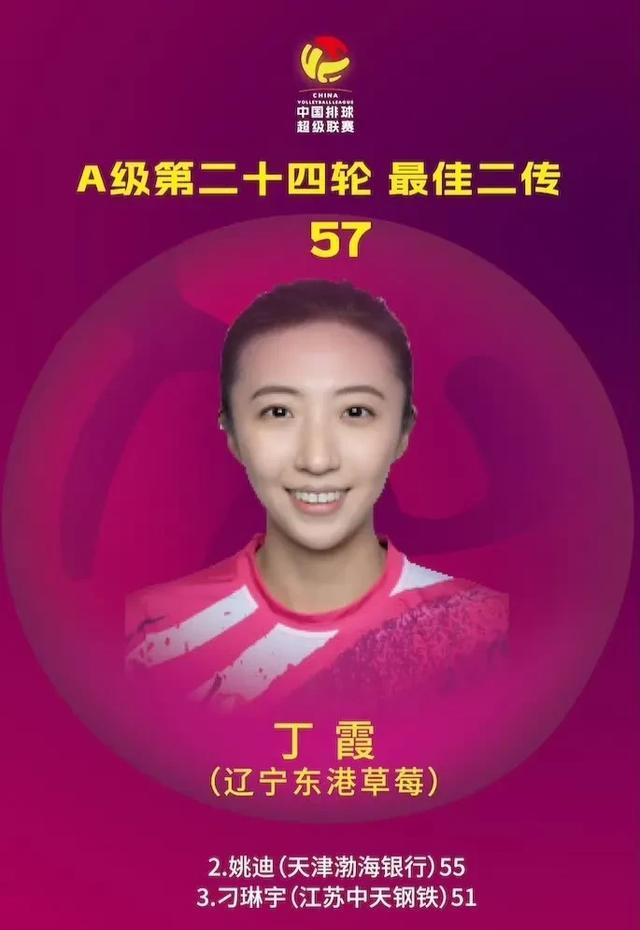 最佳二传应该会在刁琳宇、丁霞、姚迪之间选择,三人都传出了五人得分上双,但刁琳宇传出了141个球,姚迪传出了144个球,丁霞传出了161个球,最终丁霞以57个有效传球获得24轮最佳二传。
