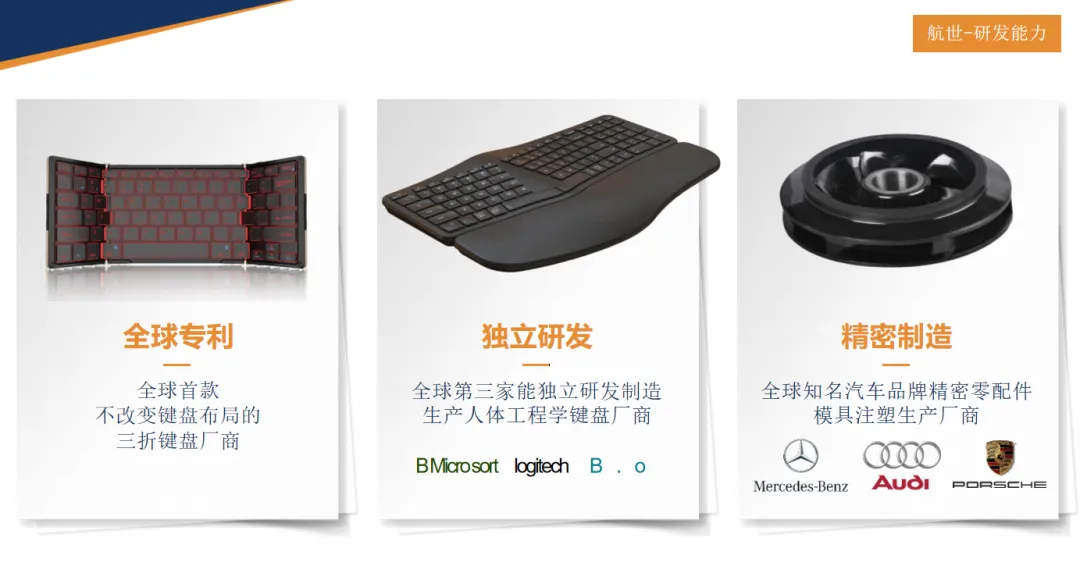 高端定制方案:为华为、荣耀、华硕等品牌提供ODM服务,如Surface系列皮套键盘、iPad妙控键盘等,其中海外亚马逊同类产品长期销量第一。