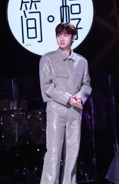 他刚一上台,站在了中间的位置,与明星杨洋、汪苏泷站成了一个完美的三角形。