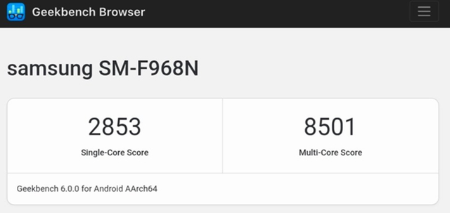 日前爆料的GeekBench6.0跑分数据显示,Galaxy Z TriFold的单核成绩为2853,多核成绩为8501,这个成绩即使是在同样使用高通骁龙8 Elite的机型当中,也属于低的。因而有猜测,Galaxy Z TriFold或对于芯片做了锁频等设置。