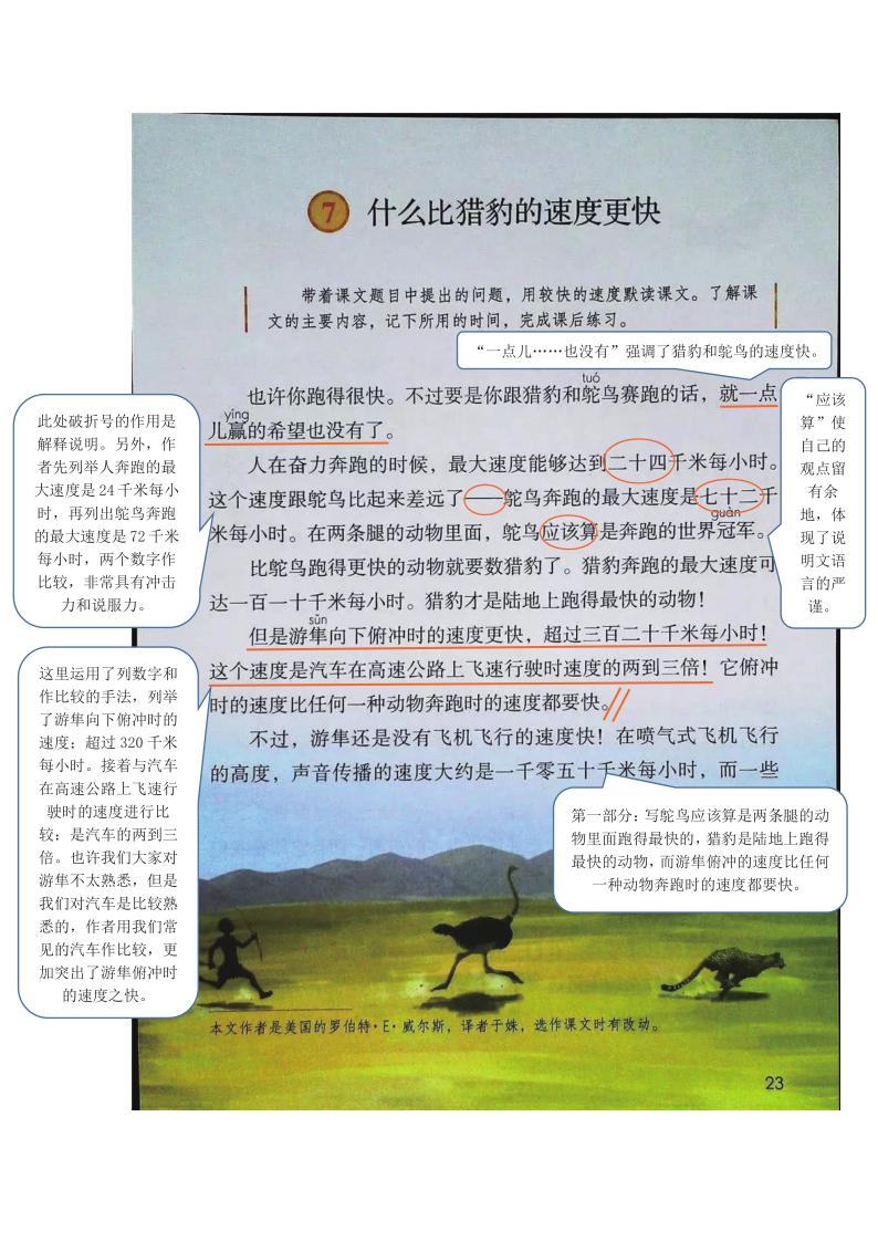 小学五年级上语文7课《什么比猎豹的速度更快》课堂笔记、阅读题及练习题