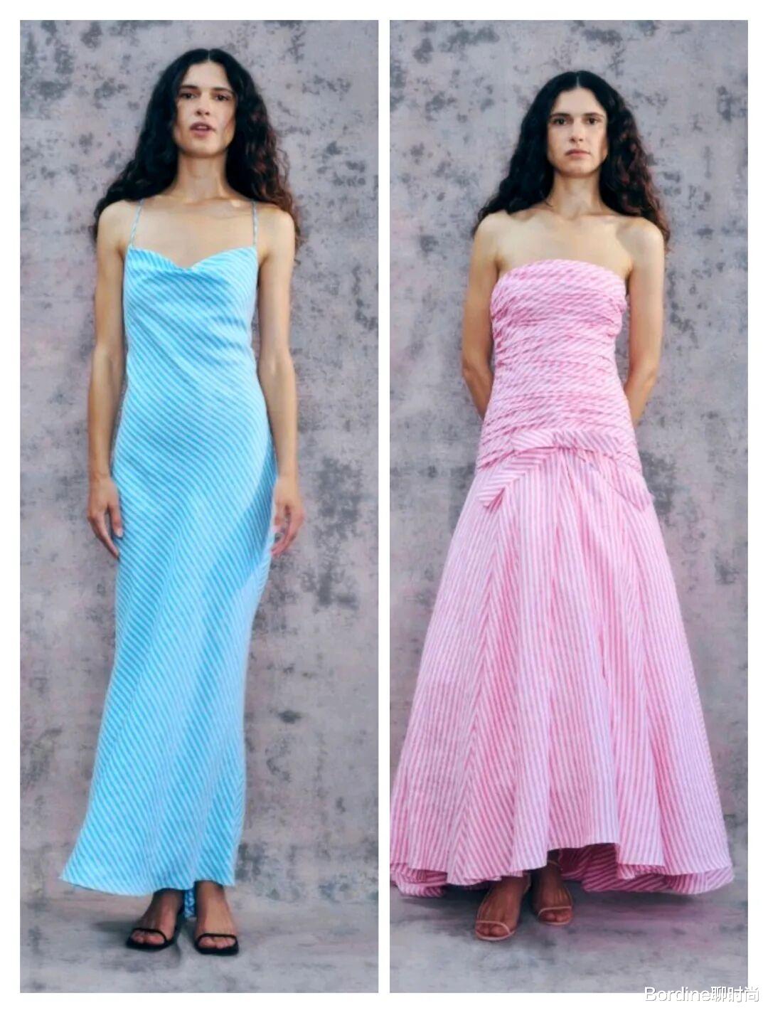 优雅的连衣裙在修身的廓形上增加了腰身曲线的温婉柔和,还在色彩之间的对比中,增加了条纹图案的简约经典,以修身曲线、堆叠褶皱等设计,则让这些条纹的连衣裙也有着更多的设计感。条纹的裙装在吊带、抹胸等设计中,虽然是不同的设计,但是在肩颈和锁骨的位置,都以露出的设计,增加了一些小性感的气质。