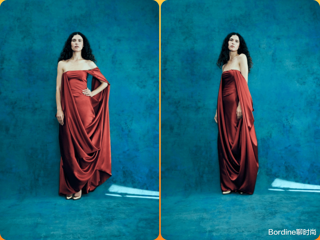 在修身的裙装上,蓝色的清新清冷、红色的热情等气质,在纯色的简约优雅中,还在色彩的对比多了一些层次差异,在修身的柔和中,和裙摆的褶皱元素形成了视觉的对比,为裙装增加了一些随性的细节亮点;红色的长款连衣裙则在短袖的款式之上,也带着几分随性的休闲日常感。