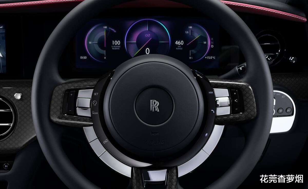 很多人会关注闪灵的动力性能:前后双电机电控四驱系统,最大功率585马力,百公里加速4.5秒,WLTP工况下纯电续航里程526公里……这些数据确实令人印象深刻。但是,对于劳斯莱斯来说,舒适性和驾乘体验永远是排在首位的。 与燃油车完全不同的底盘设计,自适应空气悬挂、自适应减震、主动防倾杆、四轮转向等等配置,都旨在为乘客提供最舒适的乘坐感受。它不是为了速度而生,而是为了享受而存在。 2935公斤的车重,也注定了它不会是一辆追求极致速度的跑车。