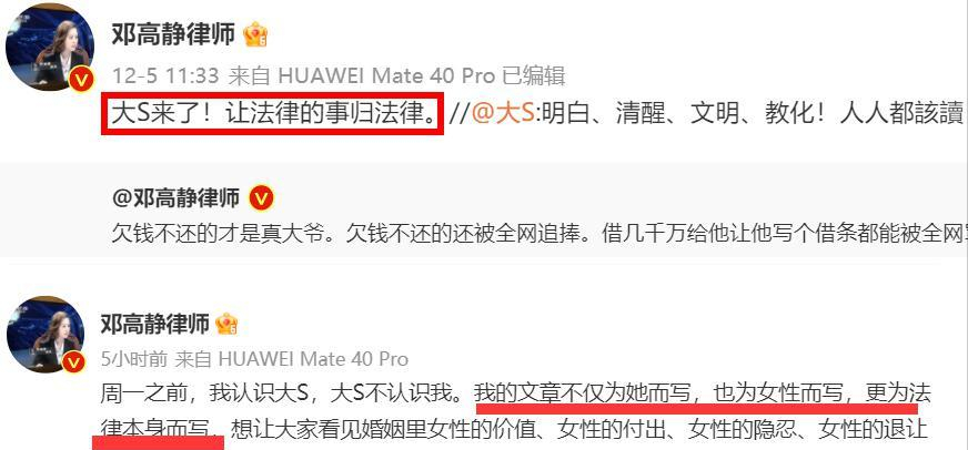 这位律师坚定地站在大s一边,痛批汪小菲才是过错方,让大s高兴的点评是:“明白,冷静,文明,教化! 每个人都应该读! ”被大s本尊夸奖的邓小平律师也越来越有勇气,再次发挥了文采,“我的文章不仅是为她写的,也是为女性写的!