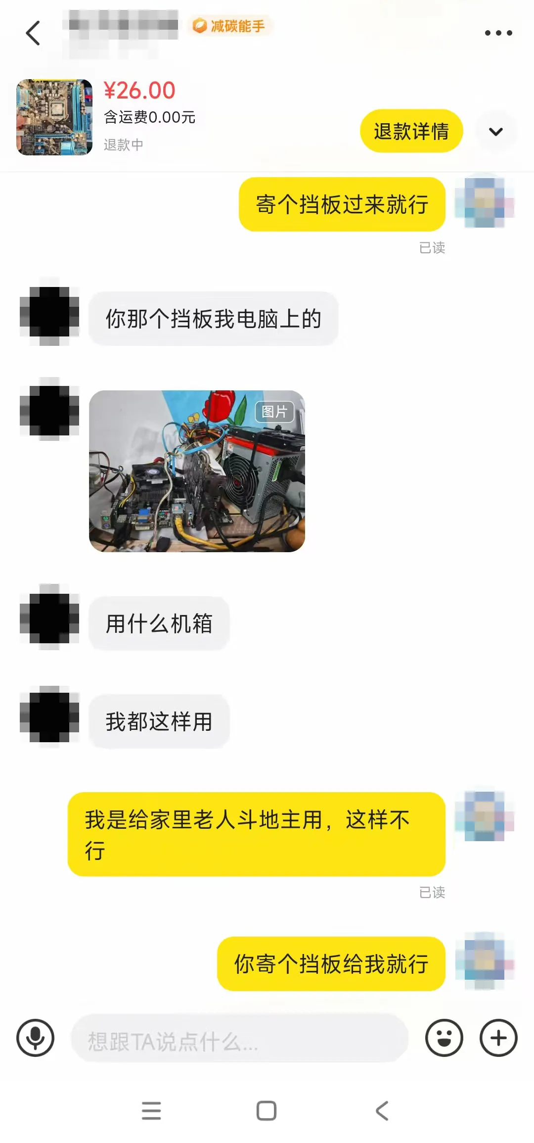 小黄鱼买的主板挡板不配套,联系卖家,还说不带挡板,这个是送的,小法庭赢了,但是支持卖家的评审,让人觉得恶心
