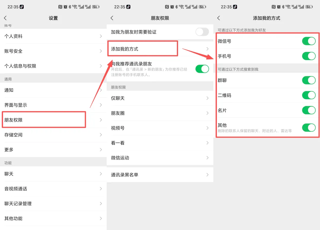 确认好适合自己的方式,接下来就可以关闭不需要的好友添加权限了。