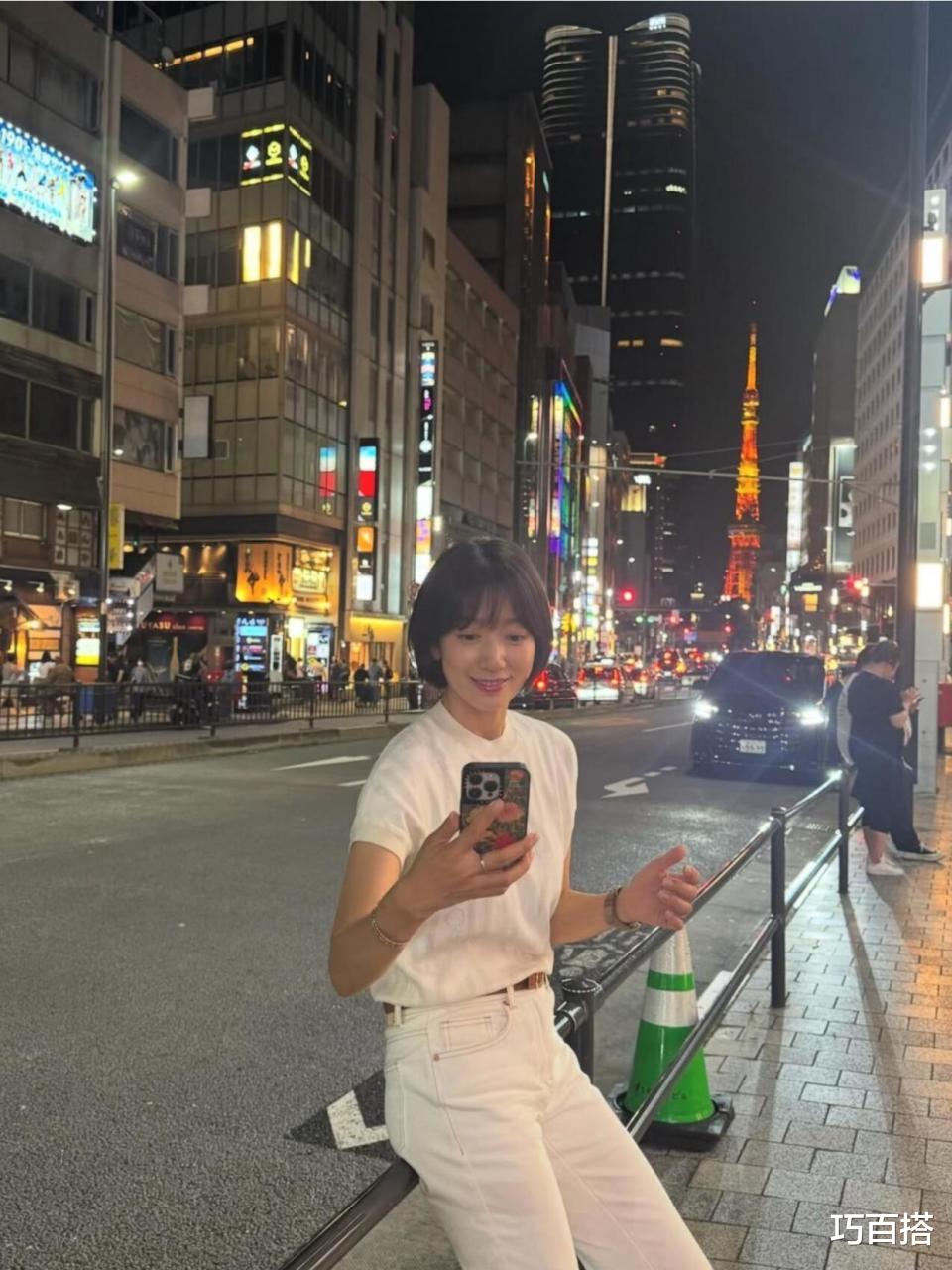 出门工作时的朴信惠状态也很棒,原图直出情况下自带明星光环,简单基础单品上身和短发发型形成呼应,清爽利落形象让人不敢相信这是一位三岁孩子的妈妈。