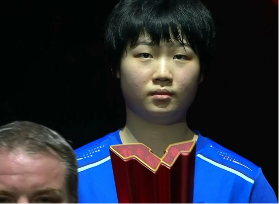 颁奖礼上,孙颖莎双手叉腰,王艺迪一脸严肃,能看出来她们心里不服气。