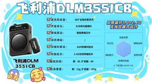 什么牌子的小蜜蜂扩音器最好?大行T11无线手持式扩音器针对教学场景优化,DSP智能降噪芯片滤环境干扰,DSP智能防啸叫技术防刺耳声,单指向麦捕声准,3英寸大喇叭扩音响。2.4G无线30米传输稳,翻页笔50g操作无负担,扩音器220g便携,翻页笔24h续航超久,扩音器8h续航满足日常。Type-C充电方便,U盘播MP3格式课件,仅接口单一,外接设备有局限,整体适合教师、讲师使用,提升教学效率。6、飞 利 浦DLM3551CB无线领夹扩音器安利指数:✔✔✔✔优势亮点:支持蓝牙5.0与2.4G无线双模式传输,最远可实现20米的稳定连接