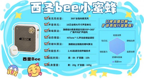 什么牌子的小蜜蜂扩音器最好?1、西圣bee无线领夹扩音器安利指数:✔✔✔✔✔优势亮点:出口欧美多年的专业老牌子,发烧级性能没有对手!