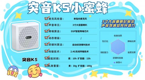 什么牌子的小蜜蜂扩音器最好?飞利浦DLM3551CB无线领夹扩音器通过采用360°全指向麦克风和DSP防啸叫技术,有效提升了音频收录质量,减少了背景噪声。它支持蓝牙5.0与2.4G无线双模式传输,最远可实现20米的稳定连接,特别适合需要灵活走动的演讲和教学场景。该扩音器还支持有线模式,通过3.5mm TRS接口连接其他音频设备,功能更加多样化。设备配备的大功率内磁喇叭,使得音量充足且清晰,适合小到中型的会议或课堂使用。7、突 音 K5无线领夹扩音器安利指数:✔✔✔✔优势亮点:3寸大音圈喇叭扩音有穿透力,2.4G无线20米内传输稳