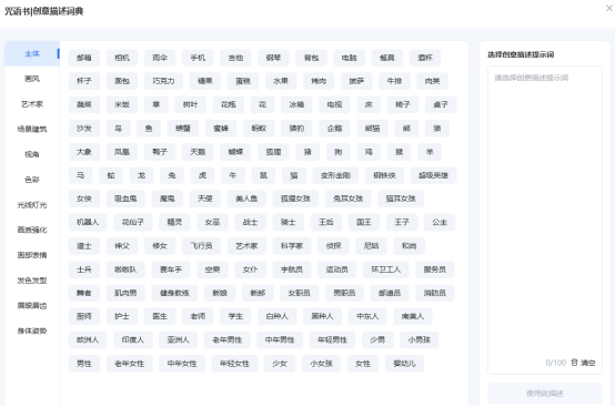 如果你不知道该怎么描述,也可以使用内置的【咒语书】,从主体、画风、色彩、光线等维度组合提示词,降低试错成本。