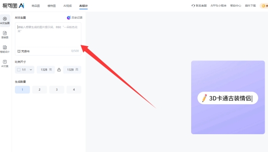 如果你不懂设计,也没有明确的视觉方案,易可图的 AI文生图功能是一个上手门槛较低的选择。