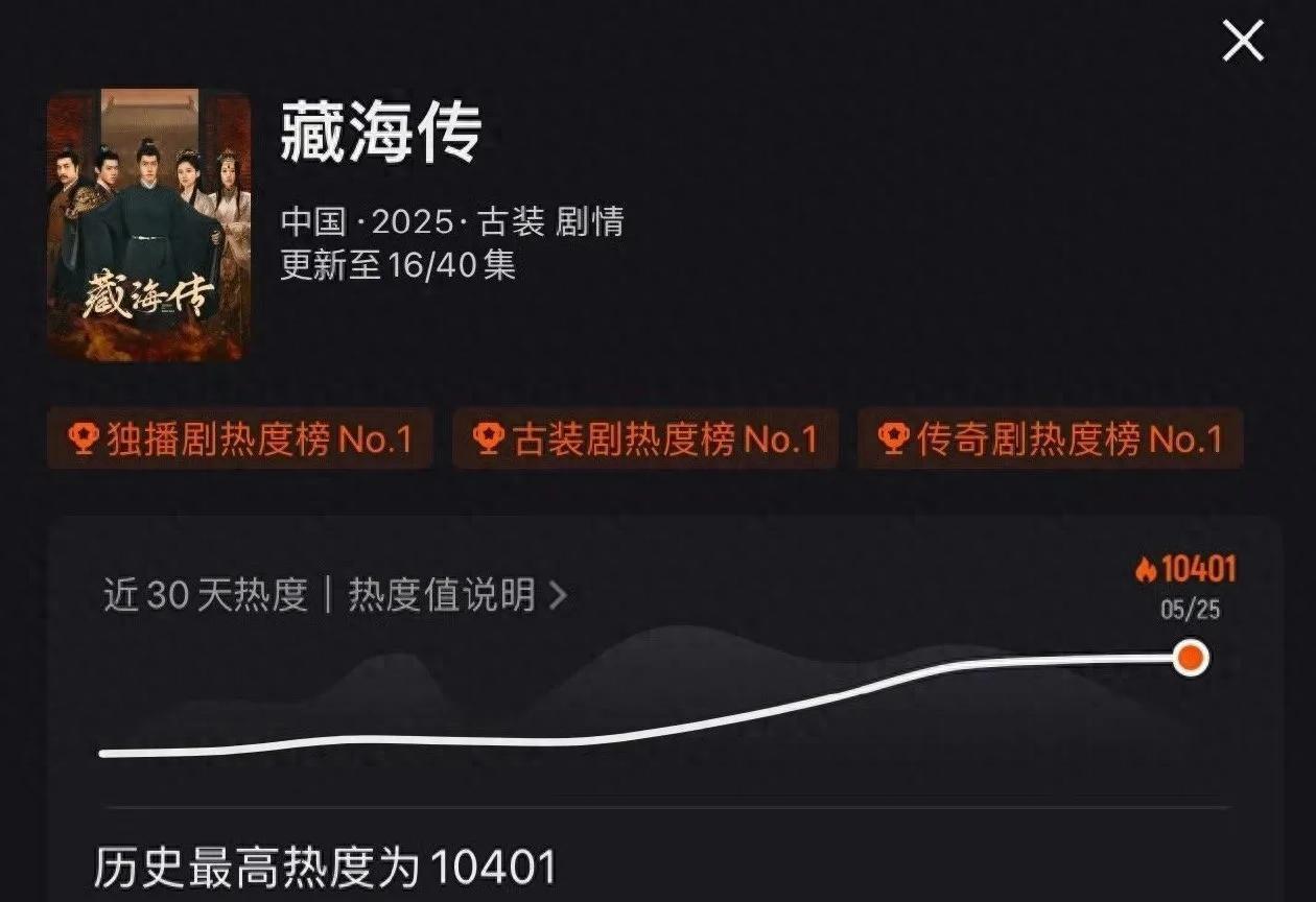 5月25号中午12点32分,优酷技术部炸了。警报器突然尖叫,《藏海传》实时热度像坐火箭似的冲到10400,直接把《难哄》保持的10376纪录踹下神坛。