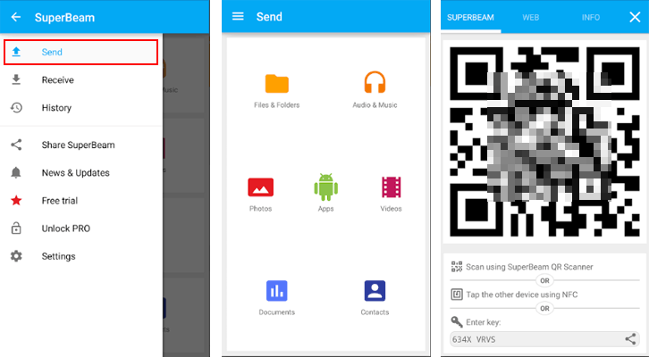 另一款可选的工具是 SuperBeam,它通过 Wi-Fi 直连实现手机间的数据传输。用户只需选中要发送的歌曲,通过扫描二维码或手机贴近配对的方式连接设备,就能建立专属的无线直连通道,提升传输速度。相比蓝牙,用这款可替代互传的工具传输大容量音乐库,速度会快上不少。