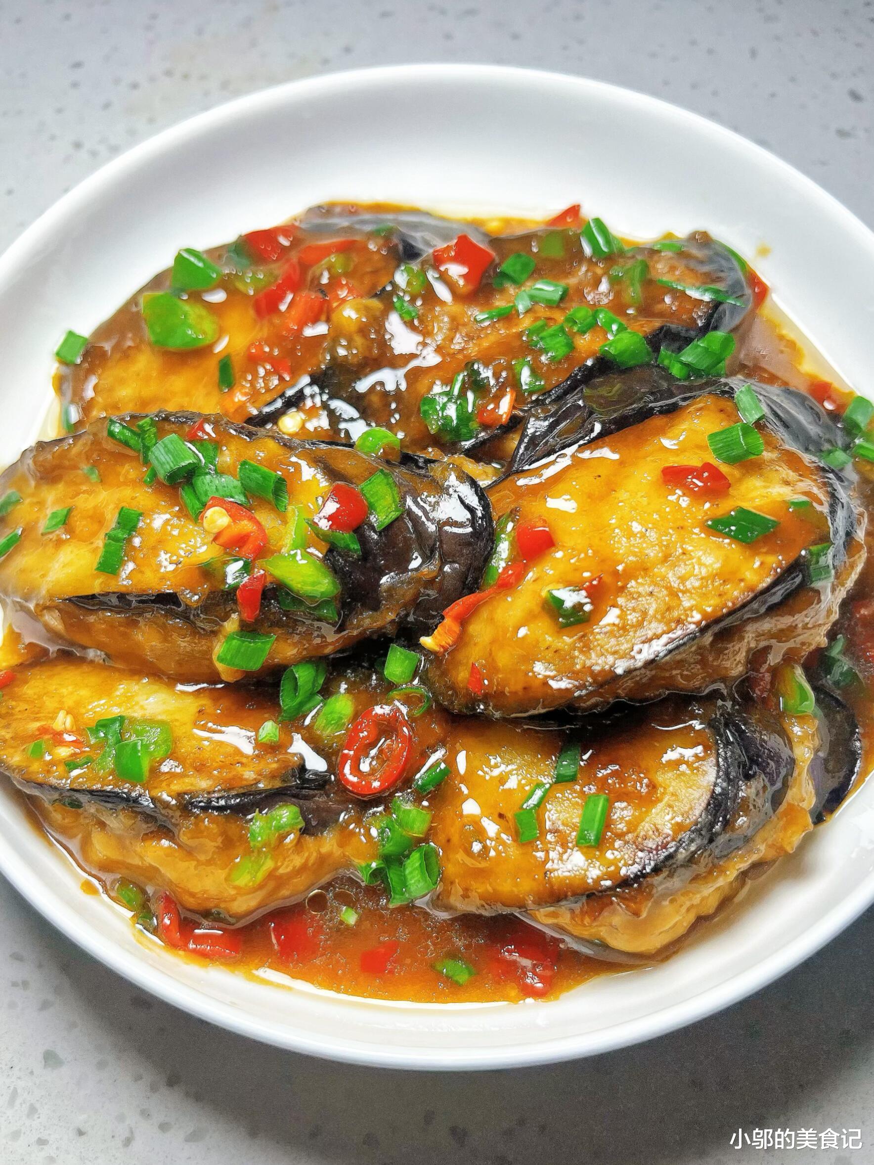 一碗酱香茄子的温柔陷阱。茄子这东西,天生带着一种“吸味”的本事,遇上咸香的酱汁,便成了米饭的“天敌”。每次做这道酱香煎茄子,总忍不住多盛半碗饭,酱汁裹着软糯的茄肉,咸鲜里带着微甜,连盘底的汤汁都要用米饭刮干净才罢休。它不像大鱼大肉那般张扬,却用家常的烟火气,悄悄在舌尖上设下一个温柔的“陷阱”。