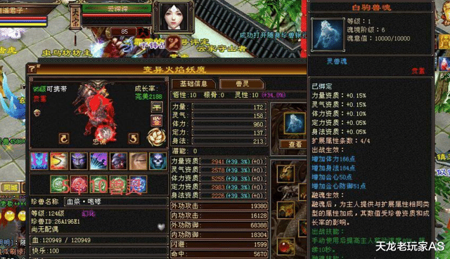 此外身上还有12只顶级天花板装备,其中两只满兽灵: