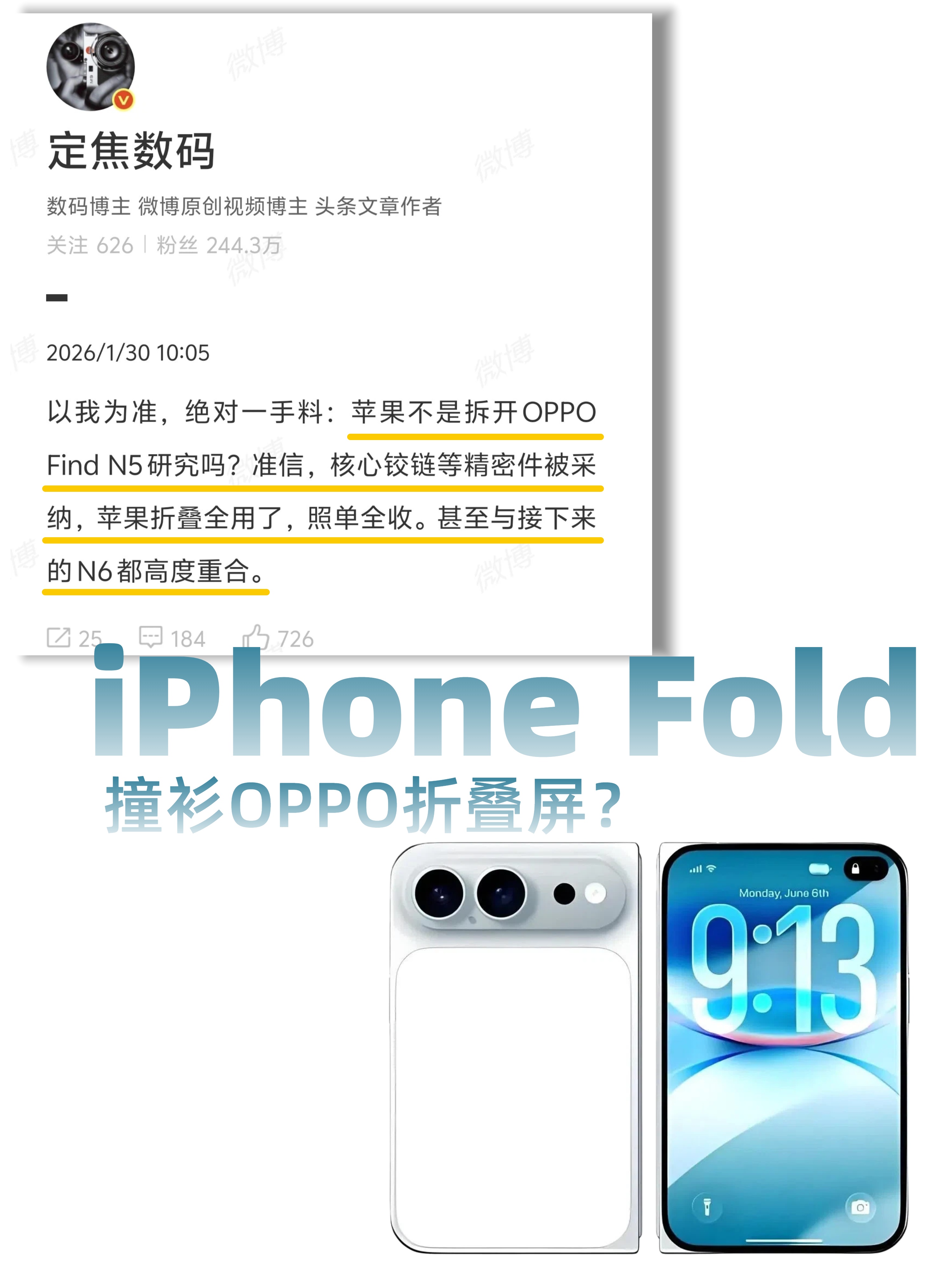 不过折痕这块就不知道苹果能不能也学到了,毕竟之前有消息说他们打样的几版DEMO在折痕这块都无法超越OPPO Find N5,实际表现如何要等9月揭晓了至于被苹果“参考”的OPPO在「无折痕」这方面的进展更快一些。新的OPPO Find N6大概率春节后就来了,据说这块屏幕的折痕控制可能做到至少半年内领先别人一大截,包括可能采用OPPO Find N6同款供应链的苹果折叠屏,也要比绿厂更晚半年才能量产——好家伙,没想到苹果也有被抢先的一天🤣