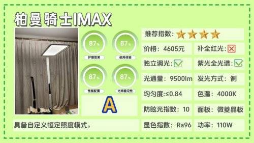 护眼大路灯第四名:柏曼骑士I Max;具备自定义恒定照度模式。